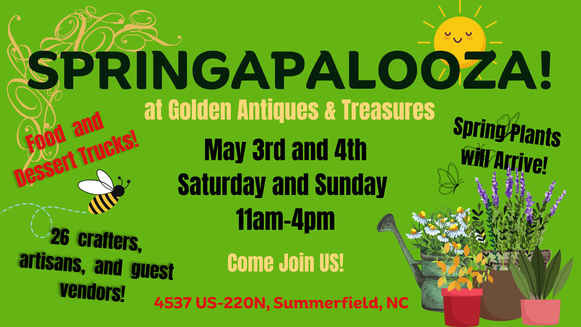 If you are interested in being a vendor for any of our events, email us with information, and pictures if possible for an application! Email to goldenantiquesevents@gmail.com